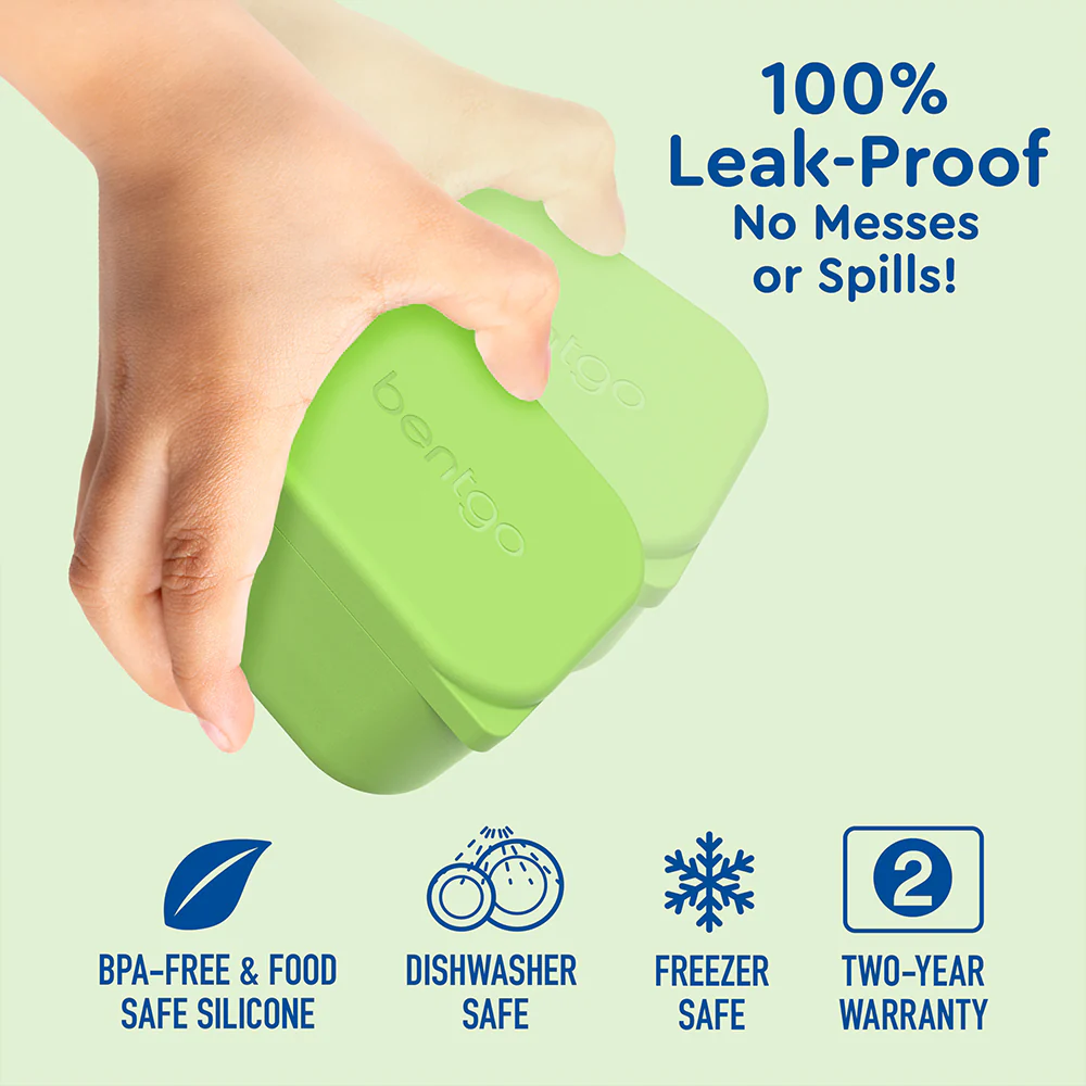 Bentgo Kids Sidekicks is a 2-pack leakproof silicone container set that’s a must-have accessory to your Bentgo Kids and Bentgo Chill lunch boxes! These mini storage cups are designed to neatly pack dips, dressings, and more inside your favorite lunch boxes for extra mealtime organization. While they’re great to use to separate liquids inside your lunch box, these containers are also great to use on their own for small snacks such as fruits, nuts, or crackers. Bentgo Sidekicks are food-safe silicone so they’re conveniently microwave, dishwasher, oven, and freezer safe. You can even use them to freeze purees or ice cubes! It’s the perfect versatile food storage container for all ages.
