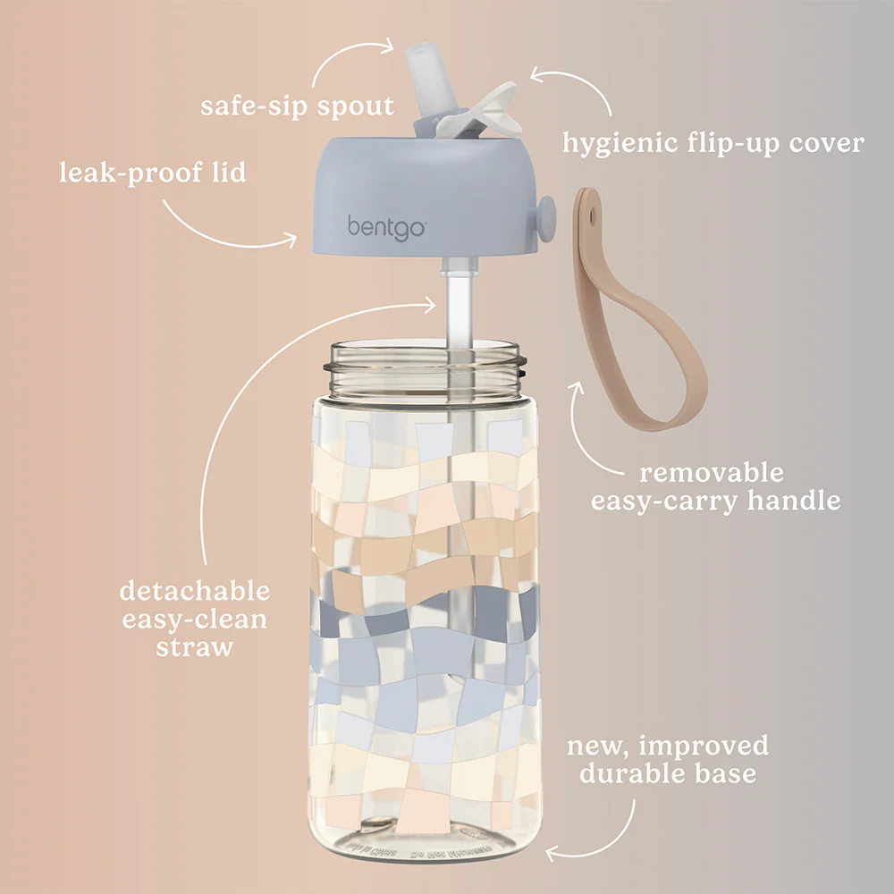 - NEW 2024 COLLECTION: Elevate lunchtime with this modern water bottle from our signature Whimsy & Wonder collection. From playful checkers to cascading stars, there’s a print to match every child’s unique personality and a parent’s polished aesthetic. Pair each water bottle with our matching Bentgo Kids lunch box, lunch bag, and backpack for a coordinated look.