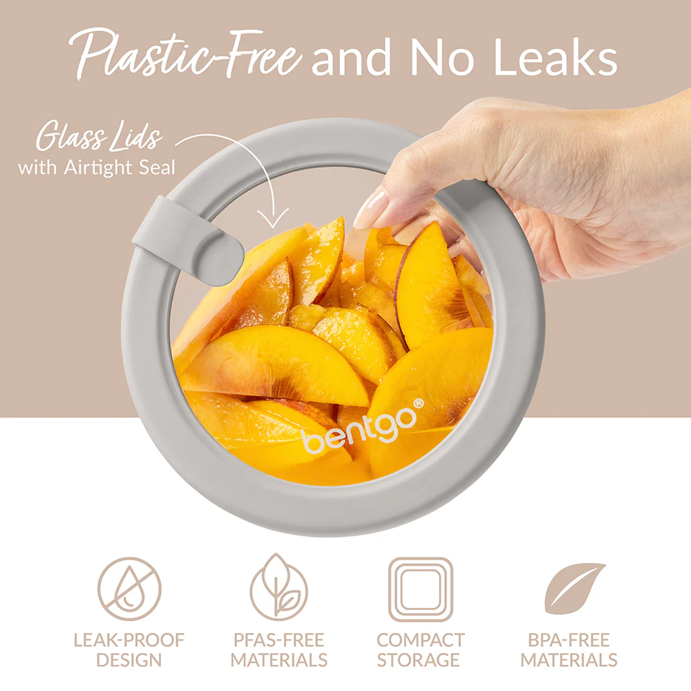 Bentgo Glass Signature Food Storage is a stylish, premium solution for organizing and keeping your meal prep, leftovers, and ingredients fresh. This 12-piece set features 6 high-quality glass storage containers with lids and 6 chic silicone-sealed tempered glass lids that provide an airtight, leakproof seal. Designed with sustainability in mind, each container is made entirely from premium borosilicate glass – stronger than traditional glass and able to withstand higher temperatures without cracking – offering a plastic-free, PFAS-free alternative that’s both durable and lightweight. Featuring a variety of sizes, this set is perfect for everything from meal prep and lunch to storing leftovers and snacks. The high-quality, crystal-clear glass design not only keeps your food fresh and easy to identify but also adds a touch of elegance to your kitchen. Built-in steam valves ensure proper venting when heating and splatter-free microwaving, while the containers nest seamlessly for space-saving storage. Microwave, oven, freezer, and dishwasher-safe, these versatile glass meal prep containers combine function with style. Whether you’re storing fresh fruits, hearty pastas, or proteins, the Bentgo Glass Signature Food Storage set is the stylish choice that elevates your kitchen while reducing your environmental footprint.